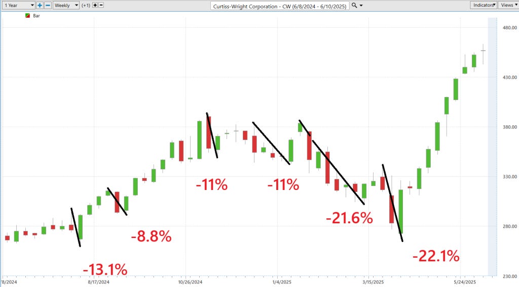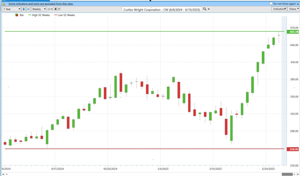 Here is the 52- week chart for $CW which clearly tells the story of the last year.