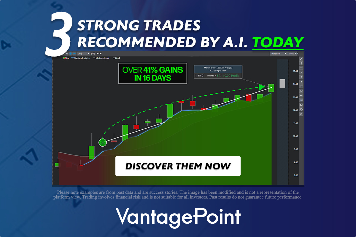 Don't miss your opportunity to transform your trading with VantagePoint’s A.I. – the revolutionary technology that predicts market trends up to 72 hours in advance with up to a documented 87.4% proven accuracy. Perfected over 30 years and trusted by more than 47,000 traders worldwide, our dual-patented A.I. analyzes millions of data points daily, providing insights no human trader could achieve alone. While others react to yesterday's news, VantagePoint Family Members are already positioned for tomorrow's opportunities with a minimum of 6 confirmation points for every trade recommendation. If you’re struggling with entry and exit timing, asset selection, or managing positions - then VantagePoint is for YOU. The markets won't wait, and neither should you – schedule your FREE personalized A.I. Forecast today and discover how VantagePoint can give you the edge you've been searching for.